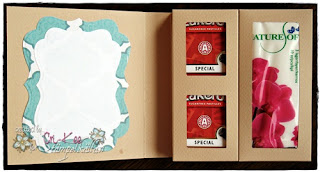 the card, there are two compartments. One of hadkerchiefs and one of läkerol.